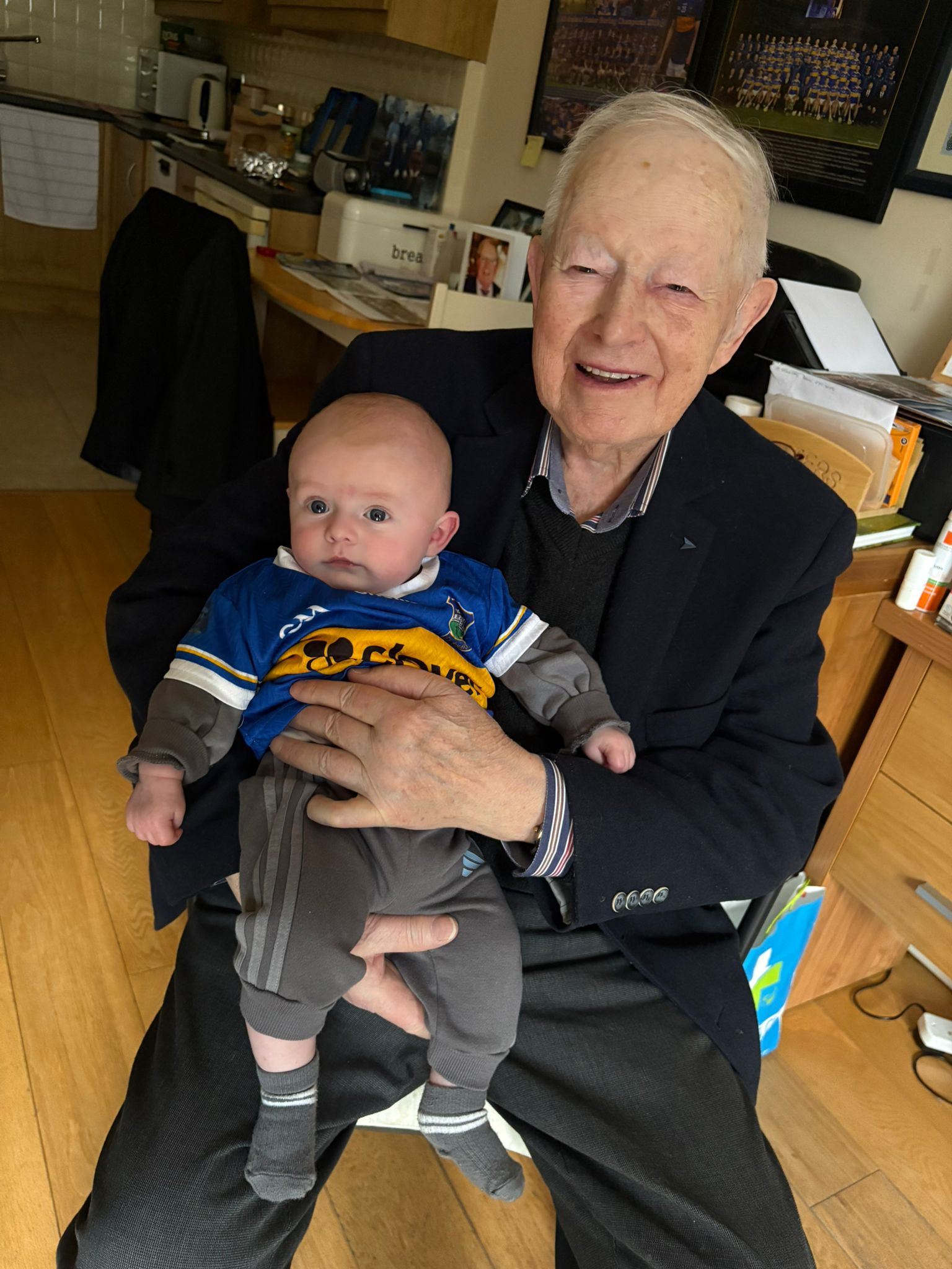 Throughout human history it was extremely rare for the average person to meet and truly know their grandparents. Only in the past 100–150 years, as life expectancy increased, has this become a normal part of family life across much of the world. Rarer still is the chance to meet a great-great-grandparent, yet baby Billy now has a photograph to cherish, pictured here with club stalwart Jimmy Morris — five generations of the Morris clan captured in a single image.